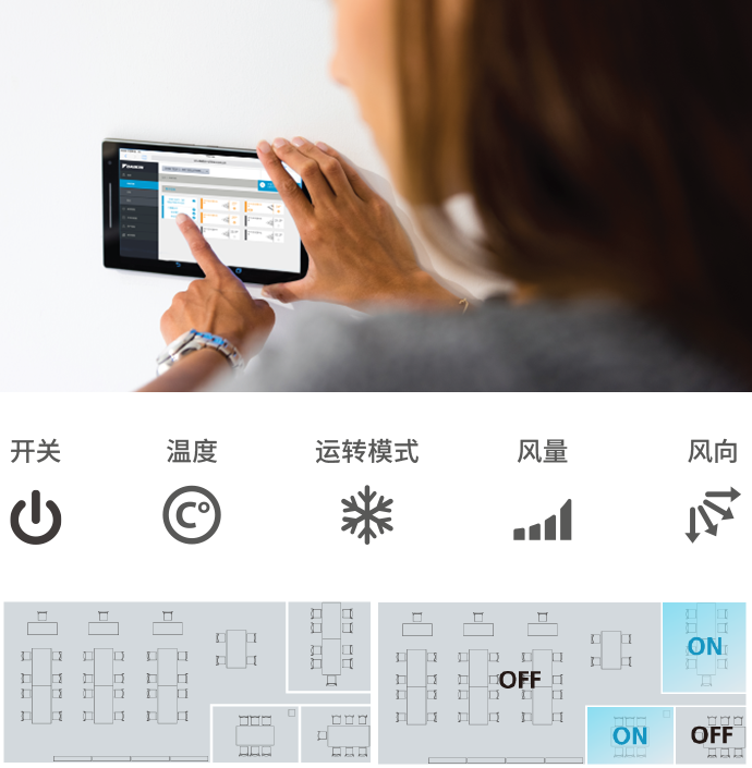 您可以远程查看运行情况,集中控制办公室的空调设备。